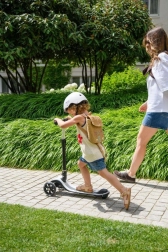 Vďaka skladaciemu rámu kolobežku zložíte jedným tlačidlom a ľahko ju prenesiete či uložíte. 3-stupňové nastavenie riadidiel (60 / 66 / 72 cm od nášľapu) zabezpečí, že kolobežka porastie s dieťaťom niekoľko sezón.