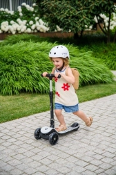 Ľahká a stabilná trojkolesová kolobežka pre malých jazdcov od 3 rokov. Ponúka bezpečnú jazdu vďaka trom kolieskam, protišmykovej nášľapnej ploche, nožnej brzde a mäkkým rukovätiam. Vďaka nastaviteľným riadidlám (3 výšky) a skladaciemu rámu rastie s dieťaťom a ľahko sa prenáša. Deti nadchnú LED svietiace kolieska pre zábavu aj viditeľnosť.