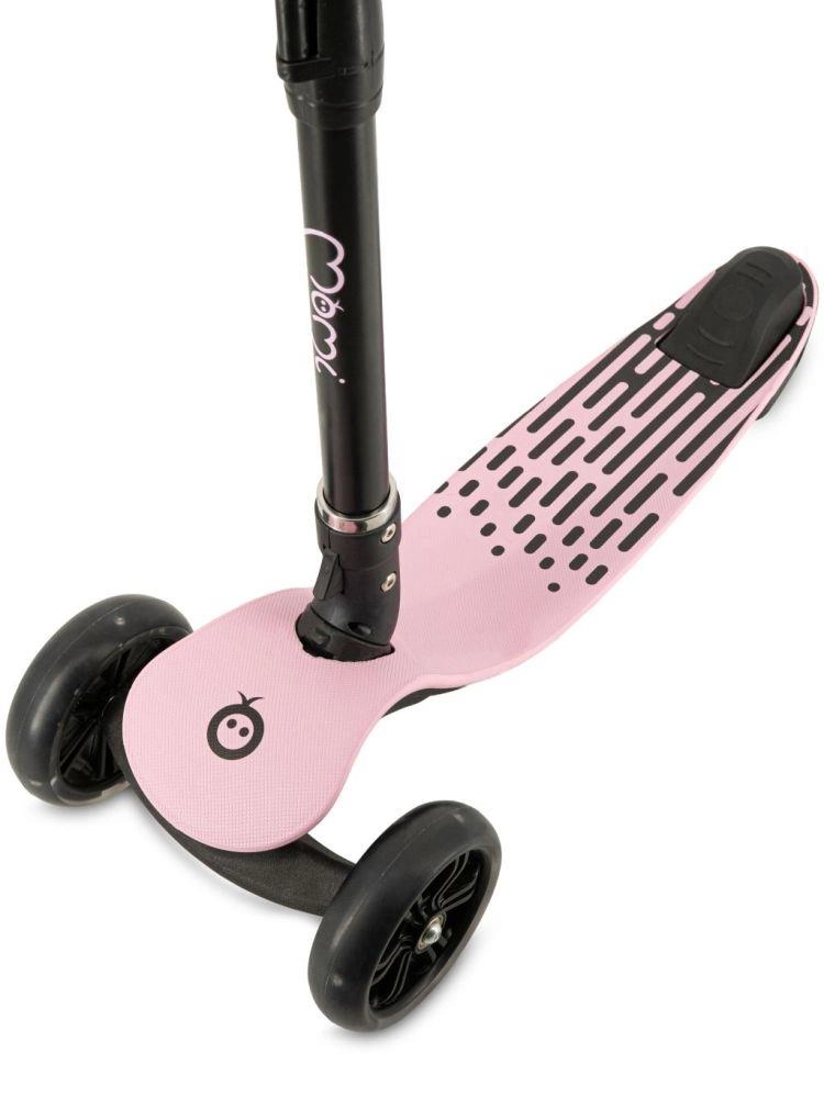 MoMi San je ideálna prvá kolobežka na rozvoj rovnováhy a istoty pri jazde. Trojkolesová konštrukcia s dvoma prednými a jedným zadným kolieskom zaisťuje výbornú stabilitu, zatiaľ čo široká protišmyková plocha a pohodlné gripy prispievajú k bezpečnému ovládaniu. LED kolieska sa rozsvietia počas jazdy a dodajú zábavu aj lepšiu viditeľnosť.
