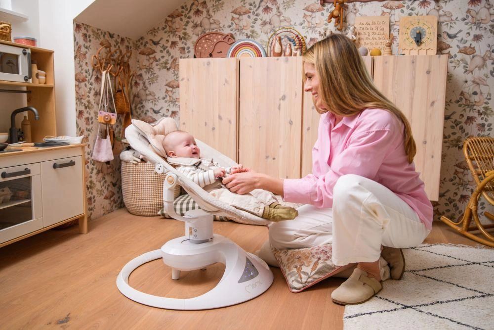 Hojdačka MoMi PEARL kombinuje moderný dizajn, komfort a šikovné funkcie, aby vaše dieťa v pokoji oddychovalo a vy ste mali voľné ruky. Otočné sedadlo o 360° zaistí ideálny náklon aj kontakt s rodičom, zatiaľ čo dva režimy hojdania s piatimi rýchlosťami pomôžu ľahko navodiť relax aj spánok. Integrovaný časovač (8/15/30 min) šetrí energiu a ponúka pohodlný automatický režim.