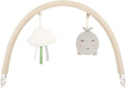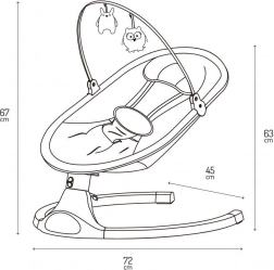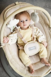 Päťbodové pásy, mäkký vankúšik a protišmykové podložky držia bábätko v bezpečí a pohodlí. Hrazdička s dvoma hračkami podporuje zmyslový rozvoj.
