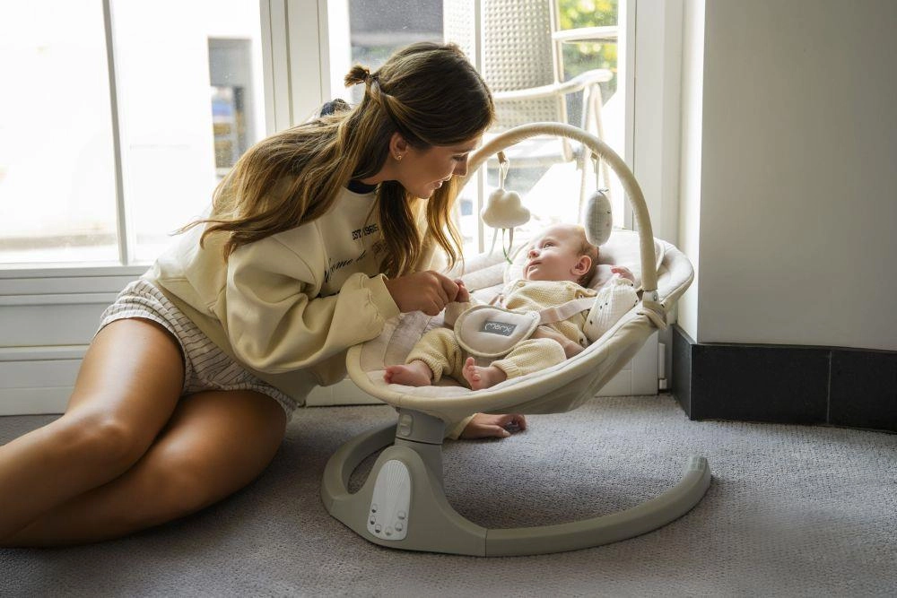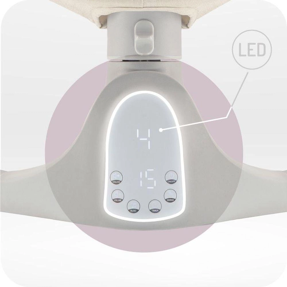 Vstavaný modul Bluetooth a 10 melódií s nastaviteľnou hlasitosťou umožnia vytvoriť príjemnú atmosféru. Päťstupňové nastavenie rozsahu hojdania verne napodobňuje prirodzený pohyb v maminom brušku a časovač na 8, 15 alebo 30 minút pomôže nastaviť ideálnu rutinu zaspávania. Protišmykové podložky a päťbodové pásy zaisťujú maximálne bezpečie.