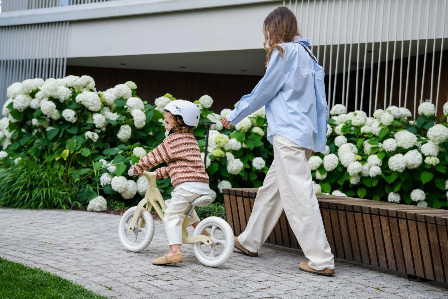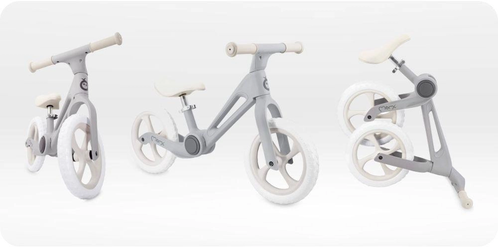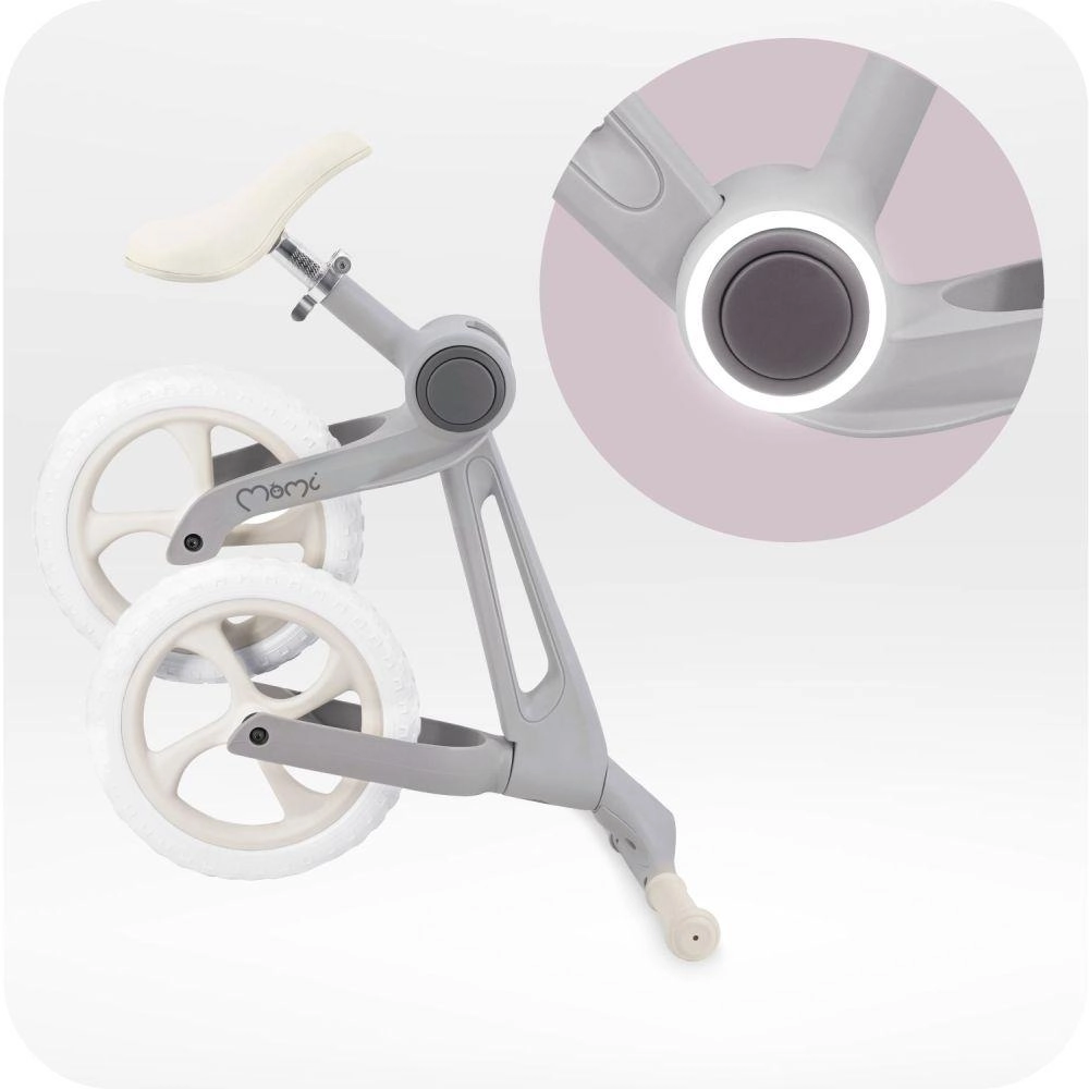 MoMi Noru posúva prvé krôčiky na bicykli na novú úroveň. Jedinečný skladací rám na tlačidlo uľahčí prevoz aj uloženie – od auta po domov bez starostí. Ľahká konštrukcia z odolného nylonu váži len 3 kg, takže ju ľahko prenesú aj rodičia jednou rukou.