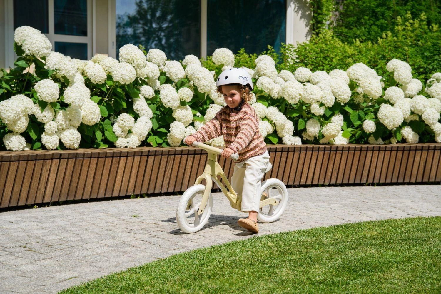 Vďaka širokému rozsahu nastavenia sedla bez použitia náradia rastie odrážadlo spolu s dieťaťom. Penové kolesá EVA s priemerom 12" sú bezúdržbové a nepreraziteľné, takže sa môžete sústrediť len na radosť z jazdy. Protišmykové gripy a absencia zámku riadenia podporujú bezpečné ovládanie a plynulé zatáčanie.