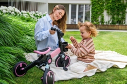 MoMi FILO 3v1 je premyslené detské vozidlo, ktoré sa prispôsobí veku aj zručnostiam detí od 18 mesiacov. Počas chvíľky ho zmeníte z odrážadla na trojkolku s pedálmi alebo na klasické balančné koleso – všetko bez použitia náradia. Vďaka skladaciemu rámu a riadidlám sa ľahko prenáša aj skladuje, takže je perfektné na výlety aj do malých bytov.