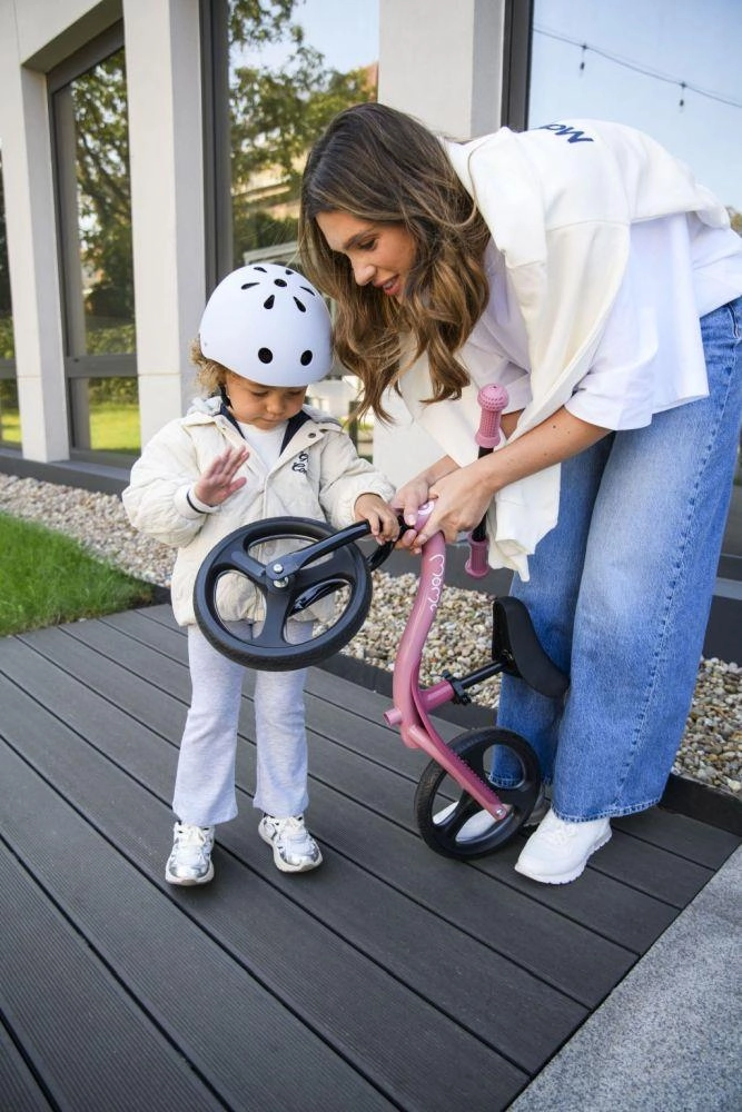 Komfort zabezpečujú kolesá z termoplastickej gumy (TPR), ktoré lepšie pohlcujú vibrácie a poskytujú dobrú priľnavosť. Výšku sedla a riadidiel nastavíte rýchlo a bez náradia, takže bicykel ľahko porastie s dieťaťom. Absencia zámku riadenia podporuje obratnosť a v prípade zakopnutia umožní riadidlám sa sklopiť, čo zvyšuje bezpečie.