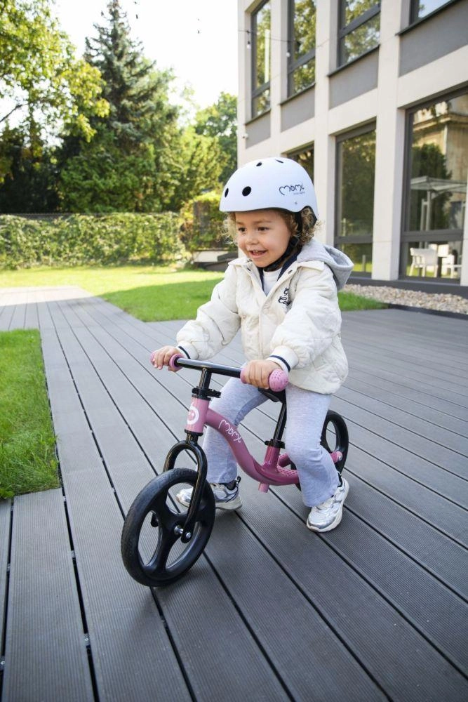 Výšku sedla aj riadidiel nastavíte bez náradia behom pár sekúnd, takže odrážadlo ľahko porastie s dieťaťom. Kolesá z pružnej termoplastickej gumy TPR tlmia vibrácie a zabezpečujú tichú, komfortnú jazdu na chodníku aj na záhrade. Absencia zámku riadenia zlepšuje ovládateľnosť a pri páde sa riadidlá sklopia, čo zvyšuje bezpečnosť.