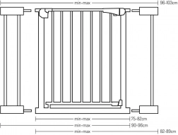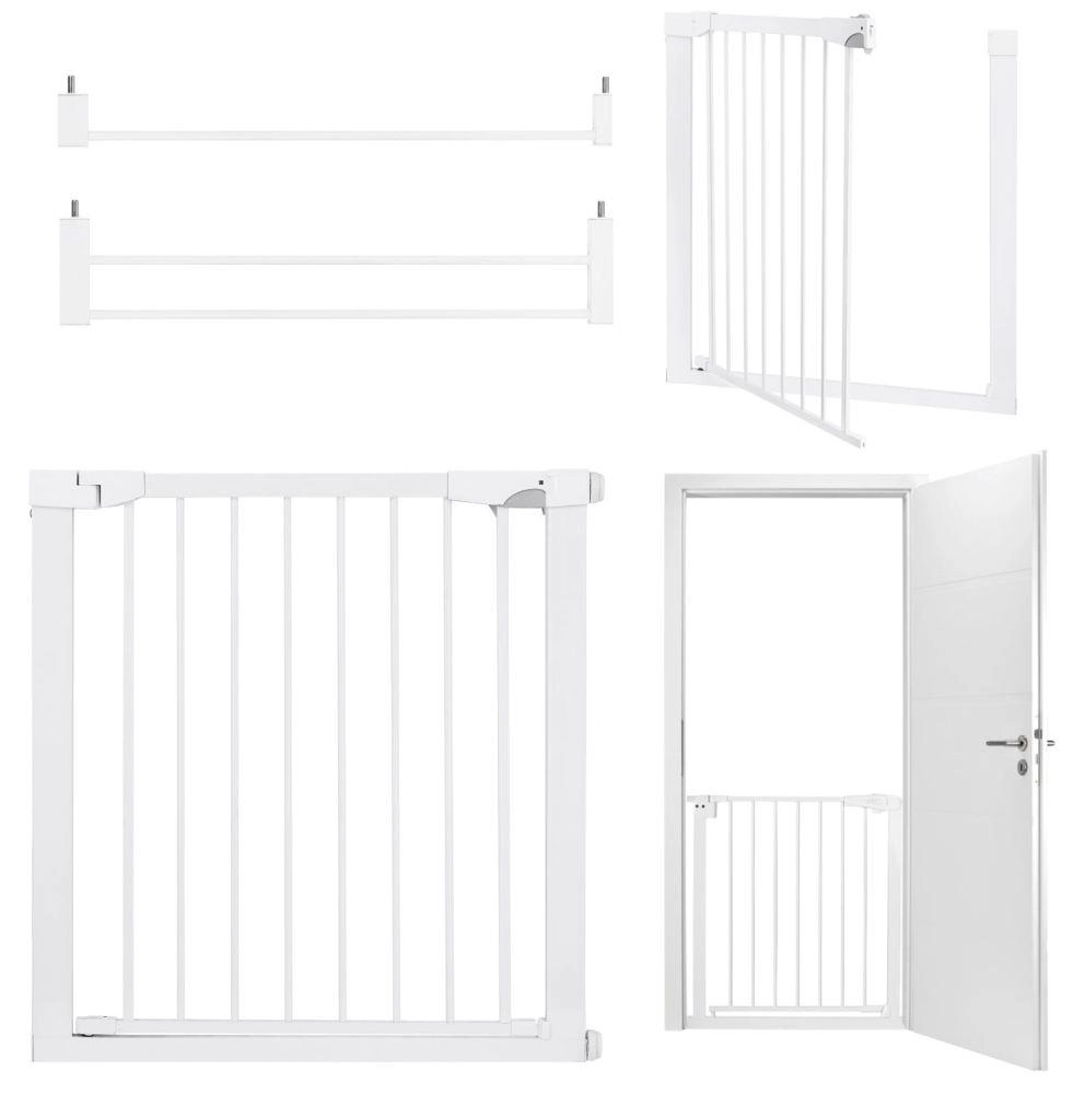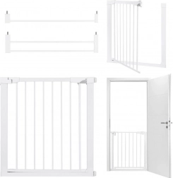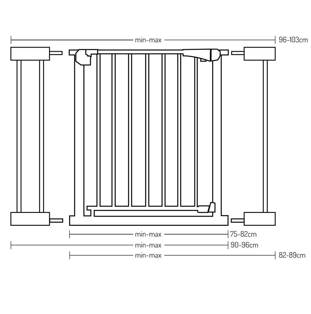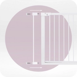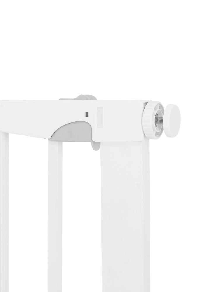 MoMi PAXI Plus je pevná kovová zábrana v elegantnej bielej, navrhnutá pre rýchlu inštaláciu bez náradia. Vďaka základnej šírke 75–82 cm a dvom nadstavcom (7 cm a 14 cm) bezpečne uzavrie priechody až do 103 cm. Obojstranné otváranie a inteligentný zámok zvyšujú komfort aj bezpečnosť v každodennej prevádzke domácnosti.