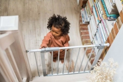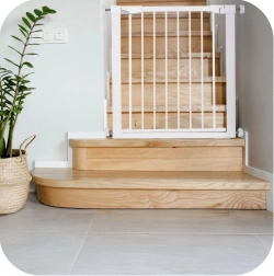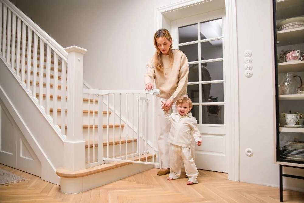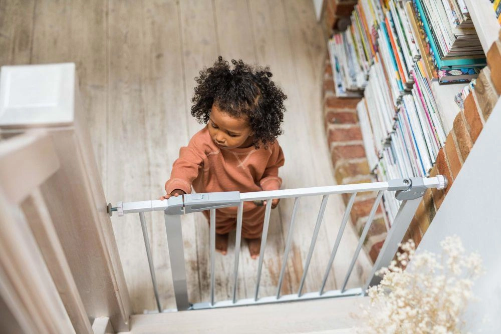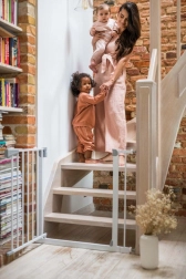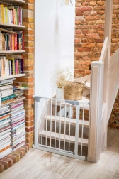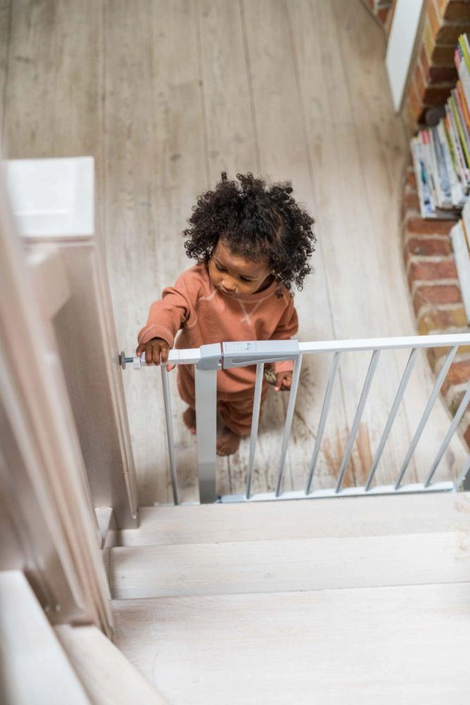 Pre maximálny pokoj spĺňa zábrana európsku normu EN 1930 a požiadavky EN71-2 a EN71-3. Pri otvorení na 90° zostáva dvierko otvorené, čo uľahčí prenášanie nákupu či manipuláciu s kočíkom. Hladké línie bez ostrých hrán a odolná konštrukcia sa hodia do moderných interiérov aj k schodisku.