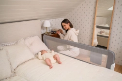 Montáž je jednoduchá a flexibilná: buď pod matrac so zaistením popruhmi, alebo pevne prišraubovaním ku konštrukcii postele. Praktické vrecko na boku pojme nevyhnutné drobnosti, ktoré chcete mať pri posteli stále po ruke. Zábrana je navyše testovaná medzinárodnými laboratóriami, aby splnila vysoké nároky na kvalitu a bezpečnosť.
