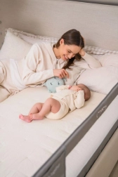 MoMi Lexi Plus je spoľahlivá zábrana na posteľ, ktorá vďaka pevnej konštrukcii a zaobleným, mäkko polstrovaným prvkom poskytne vášmu dieťaťu bezpečný spánok. Väčšinu plochy tvorí priedušná sieťovina, ktorá zaisťuje skvelú cirkuláciu vzduchu a zabraňuje prehriatiu. Otváranie o 180° umožňuje pohodlné vstávanie bez nutnosti zábranu dávať dole.