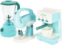 Štýlová a funkčná sada AGD 3v1 pre malých kuchárov ponúka všetko, čo je potrebné pre domácu kaviareň či kuchynské experimenty. Deti si užijú realistickú hru vďaka nalievaniu vody z kávovaru, otáčajúcim sa metličkám mixéra a rotujúcemu nožu blendera. Integrované svetlo a zvuk umocnia zážitok a priblížia hru skutočnému vareniu.