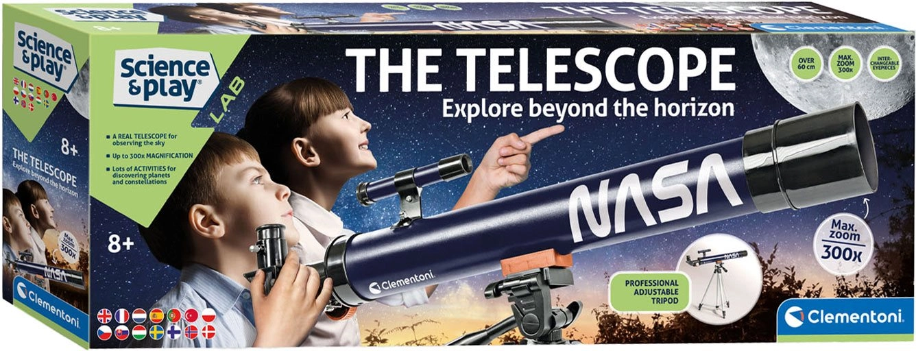 Objavujte nočnú oblohu s detským teleskopom CLEMENTONI zo série Science & Play. Tento kvalitný astronomický ďalekohľad je inšpirovaný NASA a ponúka zväčšenie 50× až 100×, doplnené Barlow šošovkou pre trojnásobné zväčšenie. Vďaka objektívu 50 mm a robustnému statívu až 130 cm je ideálny na prvé pozorovanie Mesiaca, hviezd a planét. Súčasťou je ilustrovaný návod, ktorý deťom vysvetlí základy astronómie. Vhodné od 8 rokov, skvelá STEM hračka na vzdelávanie aj zábavu.