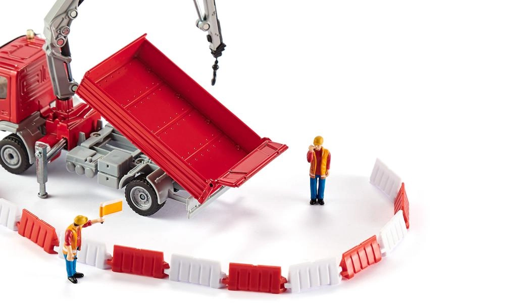 - Bohaté príslušenstvo: 2 figúrky robotníkov a cestné bariéry