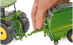 Vďaka pohyblivým klapkám, zadným dverám, zberaču a opornej nohe si ľahko nasimulujete prácu na poli. Model je plne kompatibilný s traktormi Siku Farmer 1:32 a v balení nájdete aj okrúhly balík pre dokončenie baliacej akcie.