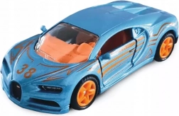 Detailne spracovaný model supersportu BUGATTI Chiron v mierke 1:50 nadchne zberateľov aj malých nadšencov. Kombinuje kov a plast pre vysokú odolnosť, ponúka otváracie dvere, gumové pneumatiky pre hladký pohyb a pútavé prevedenie v elektricky modrej farbe s oranžovým interiérom.