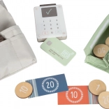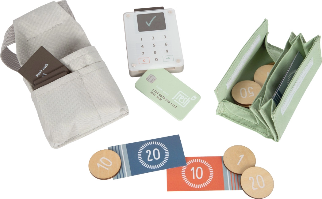 Kapsa na opasok s peňaženkou, hracími peniazmi a čítačkou kariet umožní deťom prijímať „platby“, vydávať účtenky a trénovať sociálne zručnosti.