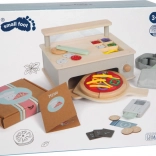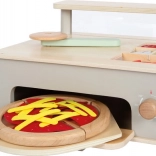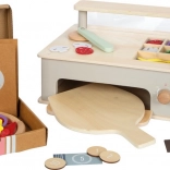 Táto kvalitná drevená pizzéria od small foot je skvelým doplnkom každej detskej kuchynky. Pec s otočným gombíkom, ktorý pri otáčaní cvaká, slúži zároveň ako špajza aj ako predajný pult. Deti môžu pizzu piecť, krájať aj servírovať na drevenej lopate a vďaka bohatému príslušenstvu sa zahrajú na kuchára aj predavača.