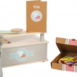 Pečte, krájajte a predávajte pizzu ako v skutočnej pizzerii! Táto robustná drevená sada kombinuje pec, špajzu aj predajný pult v jednom a ponúka bohaté príslušenstvo, plstené ingrediencie, krájacie koliesko, peňaženku s platobnou čítačkou aj krabicu na pizzu. Deti si precvičia jemnú motoriku, role‑play a sociálne zručnosti, zatiaľ čo otočný gombík pece vydáva zábavné cvaknutie pre ešte realistickejšiu hru.