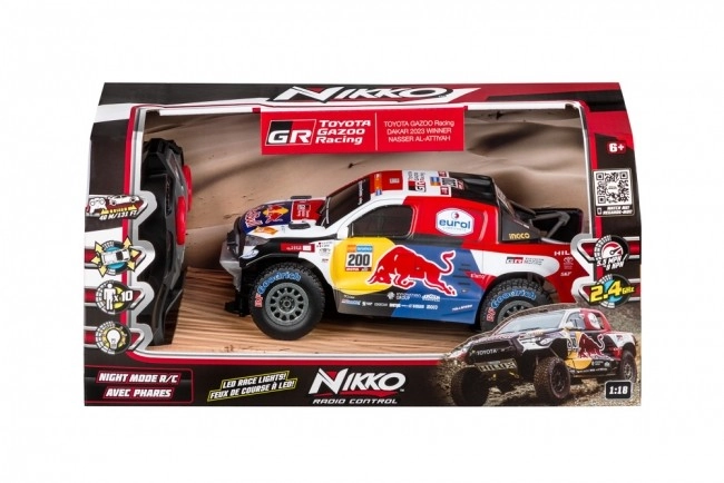 Zažite napínavú jazdu inšpirovanú súťažou DAKAR. R/C auto Toyota Dakar v mierke 1:18 prináša realistický vzhľad, spoľahlivý výkon a jednoduché ovládanie. Predné LED osvetlenie zlepšuje viditeľnosť, gumové pneumatiky zabezpečujú dobrú trakciu a odolná karoséria zvládne ľahký terén.