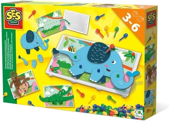 Kreatívna mozaika – zvieratká prináša múdru hru, ktorá spája skladanie puzzle s vkladaním kolíkov. Deti si vytvoria slona, opicu, krokodíla a ďalších obyvateľov džungle a vďaka pohyblivým spojom ich rozhýbu. Skvelé na domácu zábavu aj kreatívne krúžky.