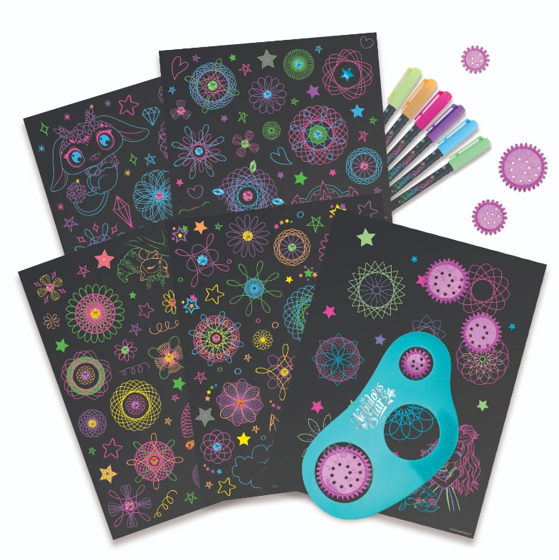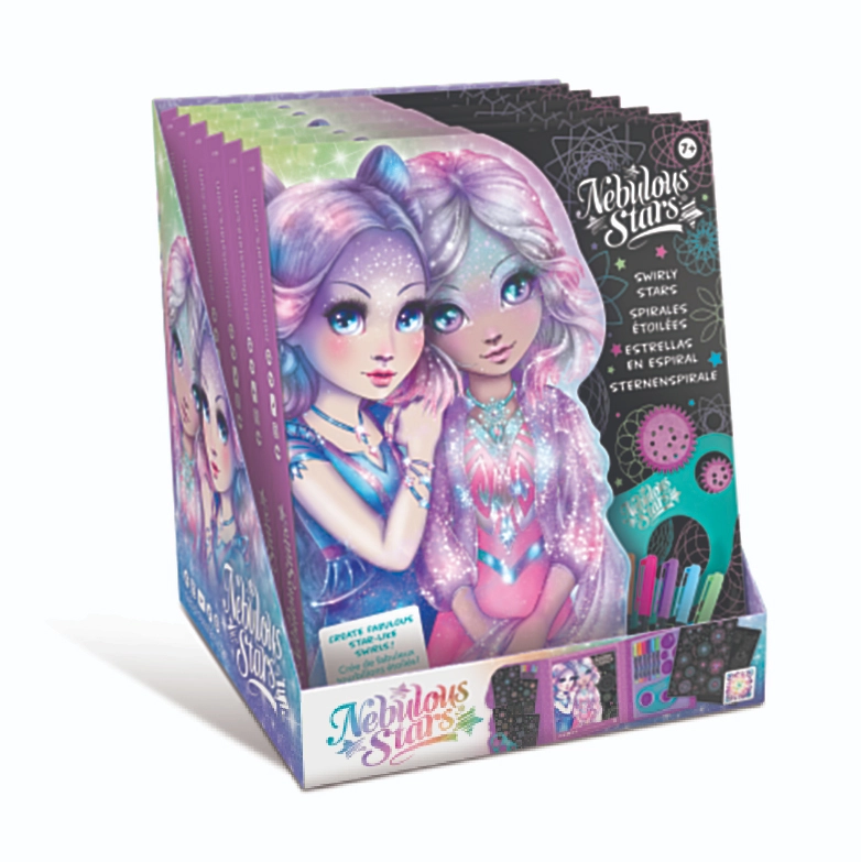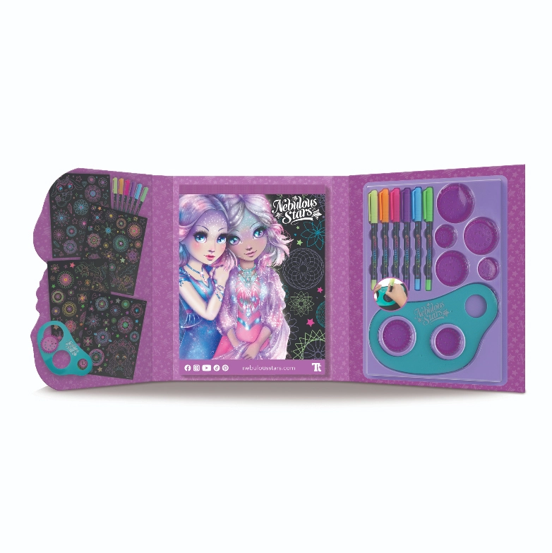 Vstúpte do hviezdneho sveta NEBULOUS STARS a roztočte fantáziu s originálnym setom na maľovanie špirál. Čierne strany nádherne zvýraznia neónové farby a šablóna so 7 kolieskami umožní ľahko tvoriť dokonale pravidelné aj hravo kombinované špirálové vzory.