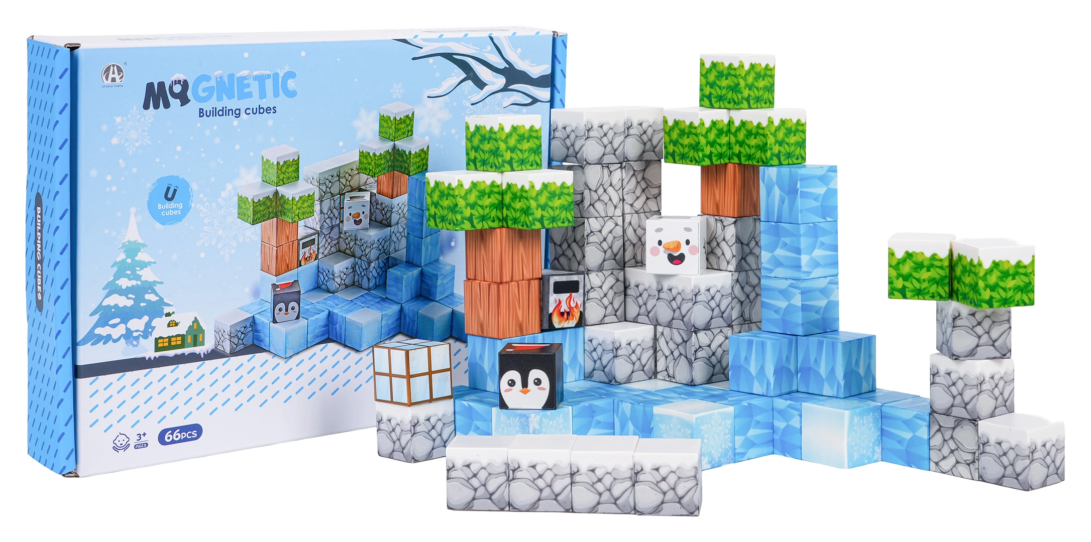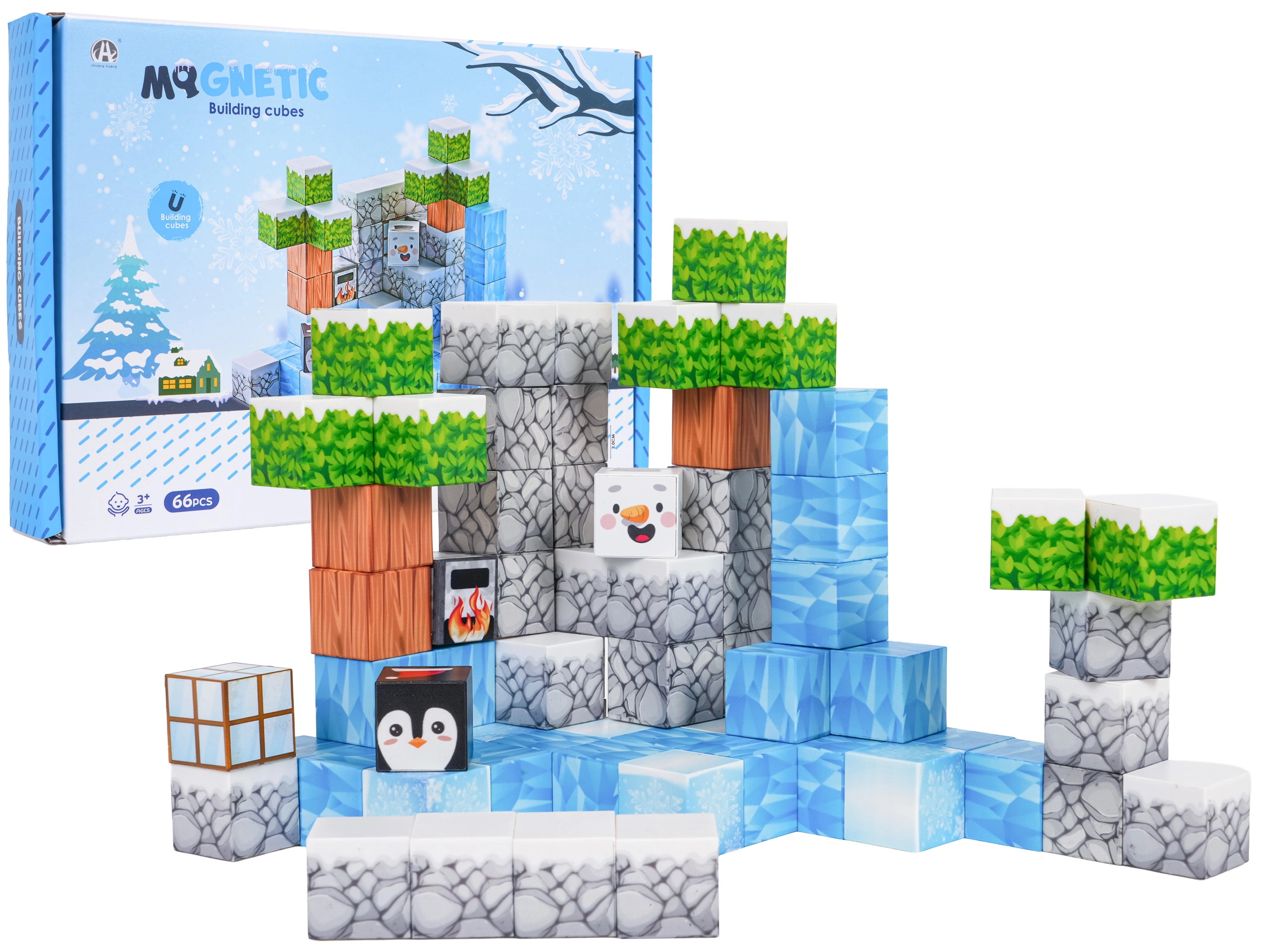 Stavebnica magnetických kociek 3D obsahuje 66 dielov v pestrých farbách a s atraktívnou zimnou grafikou. Vďaka silným neodýmovým magnetom jednotlivé prvky pevne držia a umožňujú vytvárať stabilné veže, domčeky či vlastné originálne stavby. Hra podporuje kreativitu, priestorovú predstavivosť a koordinačné zručnosti.