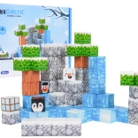 Objavte kreatívny svet s touto stavebnicou pre deti od 3 rokov: 66 farebných magnetických kociek 3D s neodýmovými magnetmi pre stabilné konštrukcie. Diely v živých farbách so zimnými motívmi (ľad, rastliny, drevo, snehuliak, tučniak) rozvíjajú logické myslenie, jemnú motoriku a predstavivosť. Ideálne ako darček.