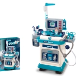 Tento bohato vybavený modrý lekársky set je ideálny pre malých lekárov a lekárky. Vďaka pevnému a ľahkému vozíku s veľkými kolieskami je hra jednoduchá a mobilná. Monitorovací panel ponúka autentické zvuky (tlkot srdca, meranie teploty, tomograf, alarm) a svetelné efekty vrátane podsvieteného srdiečka. Teplomer má vlastný svetelný a zvukový efekt, čo podčiarkuje realistický zážitok.