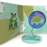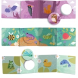 Kruhové výrezy a okrúhle žetóny so zvieratami podnecujú k priraďovaniu a objavovaniu prekvapivých „kuk“ momentov. Deti zábavne trénujú logiku aj fantáziu.