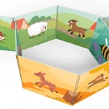 Sada obsahuje tri obojstranné leporelá so scénami z lesa, vody, lúky, farmy a ďalších prostredí. Pevné stránky z 2 mm kartónu vydržia detské zaobchádzanie.