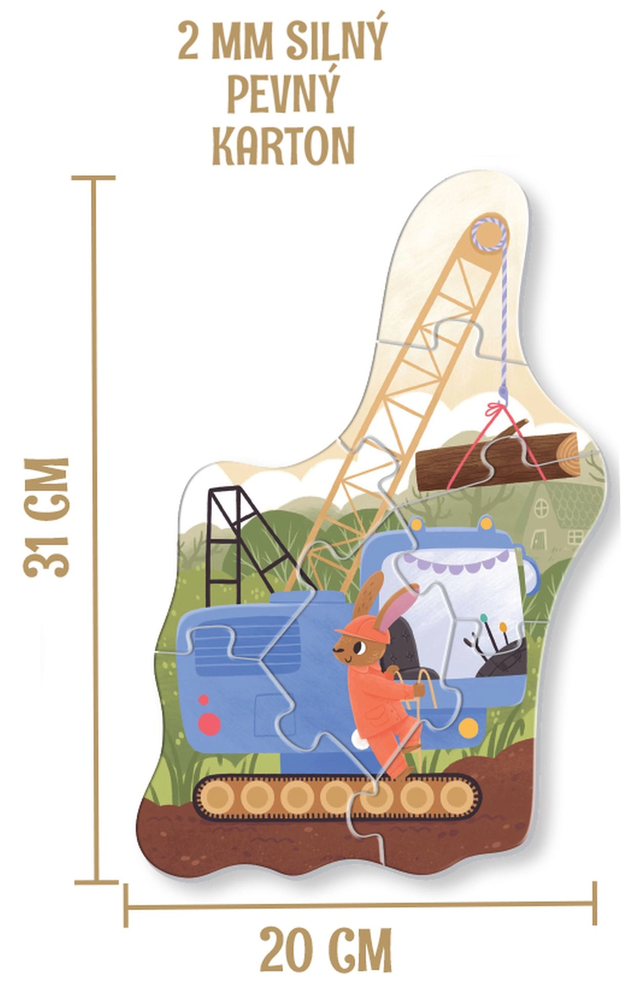 Objavte hravé skladanie so stavebnými strojmi – od jednoduchých dvojdielnych až po väčšie sedemdielne puzzle s rozmerom 31 × 20 cm. Táto sada je ideálna pre malých fanúšikov bagrov, miešačiek a žeriavov. Dieliky sú robustné, 2 mm hrubé a ľahko sa uchopujú, takže sa deťom lepšie manipuluje a rýchlejšie zažívajú radosť z úspechu.