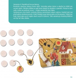 Deti samostatne objavujú, triedia a priraďujú žetóny k hotovým obrázkom. Rozvíjajú postreh, logické myslenie aj slovnú zásobu.