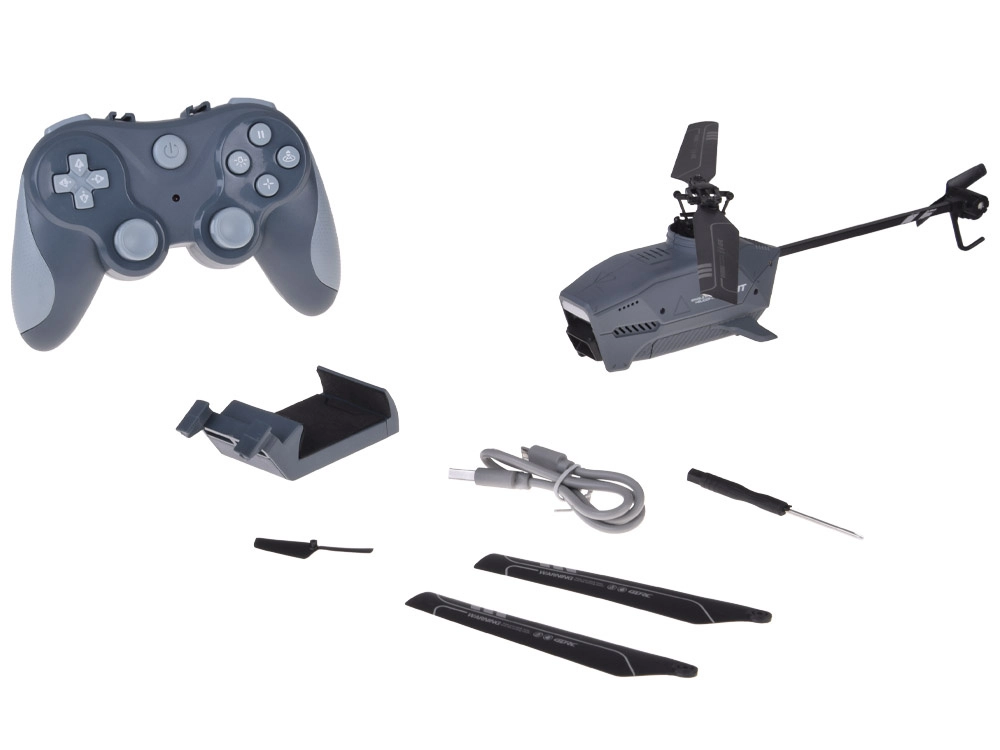 Ovládanie je intuitívne – pomocou ergonomického diaľkového ovládača ľahko vzlietnete, pristávate aj meníte smer letu. Vďaka USB nabíjaniu nabijete akumulátor pohodlne z počítača, adaptéra alebo powerbanky. Súčasťou sady sú vymeniteľné rotorové listy a skrutkovač na jednoduchú údržbu.