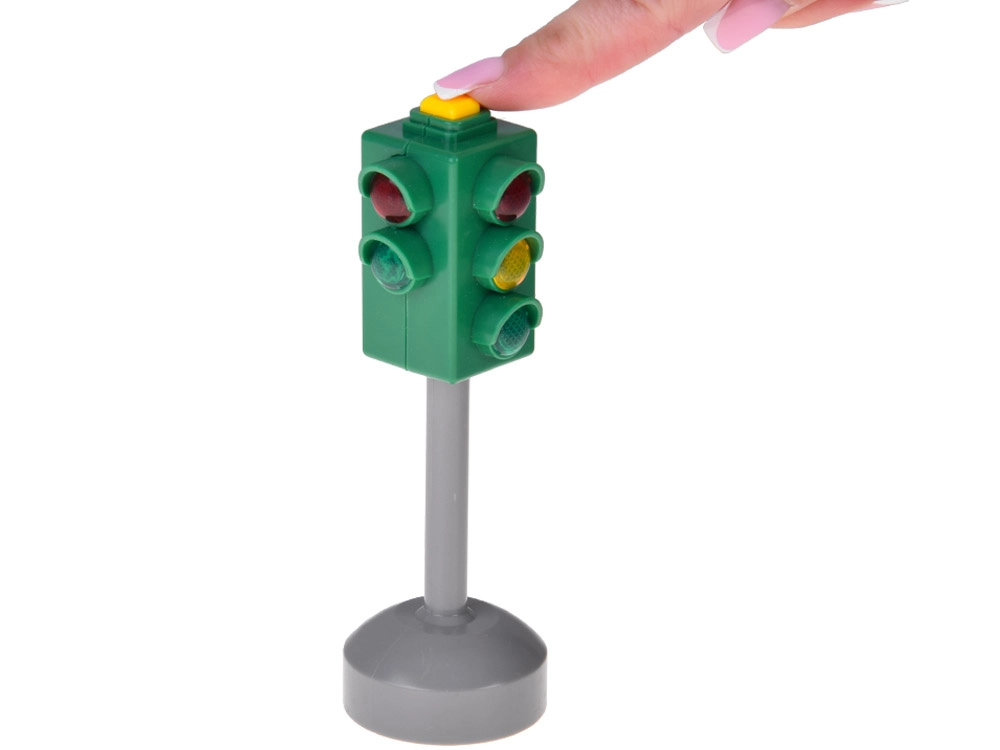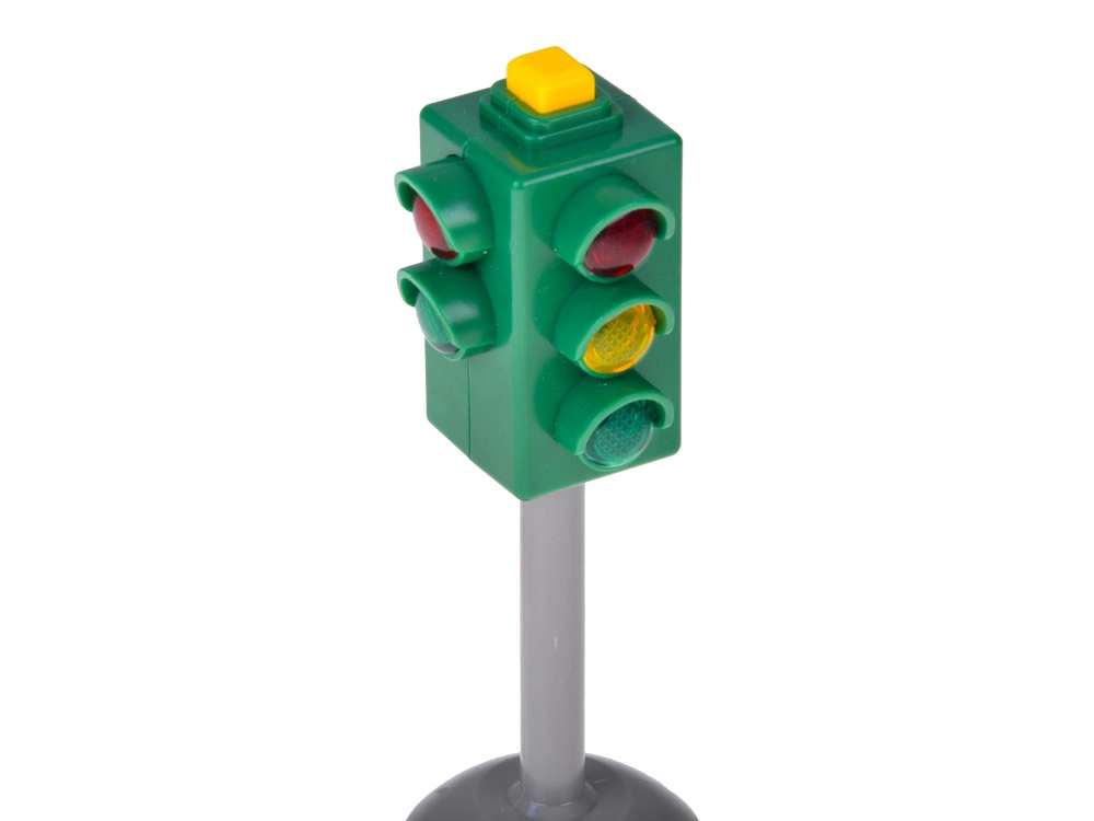 Semafor s tromi farbami svetiel (červená, žltá, zelená) a zvukom simuluje skutočnú premávku. Skvelé na učenie bezpečného prechádzania aj jazdy.