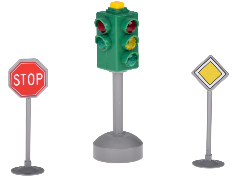 Perfektné na samostatnú aj skupinovú hru, k autodráham, mestským maketám alebo herným kobercom. Odolné prevedenie a stabilné stojančeky zabezpečujú jednoduché umiestnenie na akýkoľvek povrch. Skvelá edukatívna pomôcka do domácnosti, škôlky aj detských kútikov.