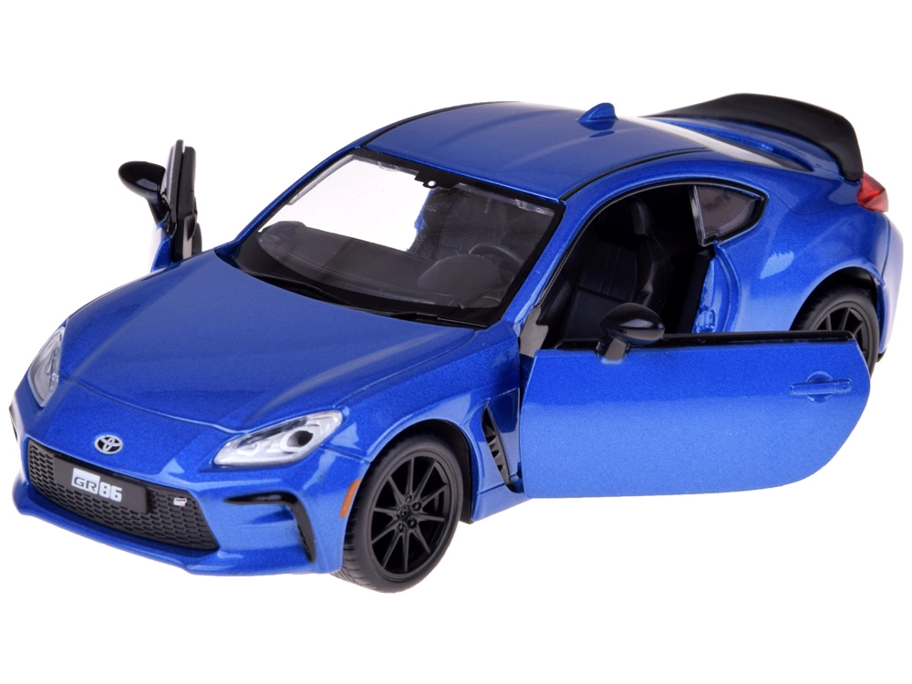 Detailne spracovaný model TOYOTA GR86 v atraktívnej modrej metalíze nadchne kvalitným spracovaním aj realistickými proporciami. Kovová karoséria s plastovým podvozkom a gumové kolesá zaistia plynulý a tichý pohyb, zatiaľ čo otváracie dvere aktivujú svetlá a zvuky motora i klaksónu.