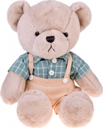 Roztomilý plyšový medvedík Franek je veľký 58 cm spoločník na túlenie v elegantnom vintage štýle. Má mäkučký béžový kožúšok, nosí zelenú kockovanú košeľu a béžové traky so šortkami. Oblečenie možno ľahko vyzliecť vďaka suchým zipsom, takže sa medvedík skvelo udržiava v čistote. Ideálny ako darček pre deti aj dospelých a krásna dekorácia do detskej izby.