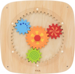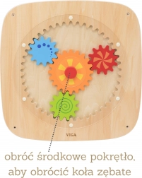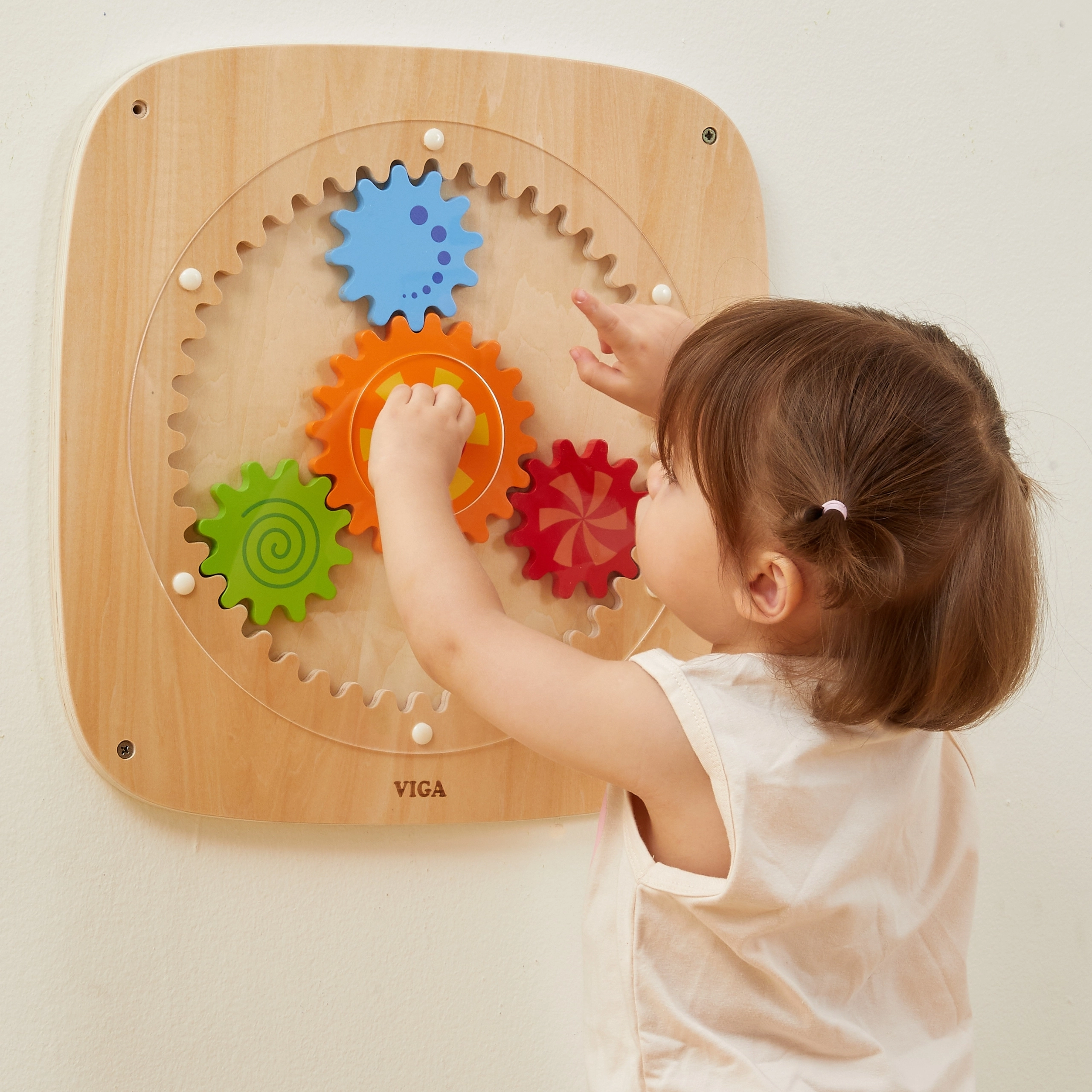 Táto drevená nástenná tabuľa s farebnými ozubenými kolesami je navrhnutá tak, aby deťom prinášala radosť z objavovania. Otočením centrálneho kolieska sa roztočia všetky prevody naraz, čo deťom prirodzene ukazuje princíp sily, pohybu a príčinných súvislostí. Rôzne farby a vzory na kolesách vytvárajú pri otáčaní atraktívne vizuálne efekty.