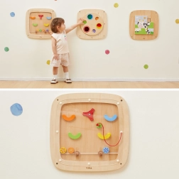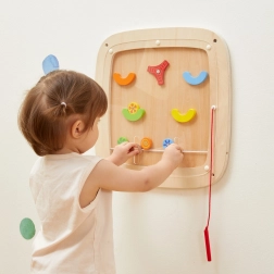 Táto nástenná drevená tabuľa je ideálna do detských izieb, herní aj škôlok – montáž na stenu šetrí priestor a zabezpečuje bezpečnú, stabilnú hru. Deti pomocou magnetického pera ovládajú smer pohybu guľôčok, prekonávajú prekážky a mierīa na bodované zóny, čím prirodzene posilňujú trpezlivosť, koncentráciu a koordináciu.