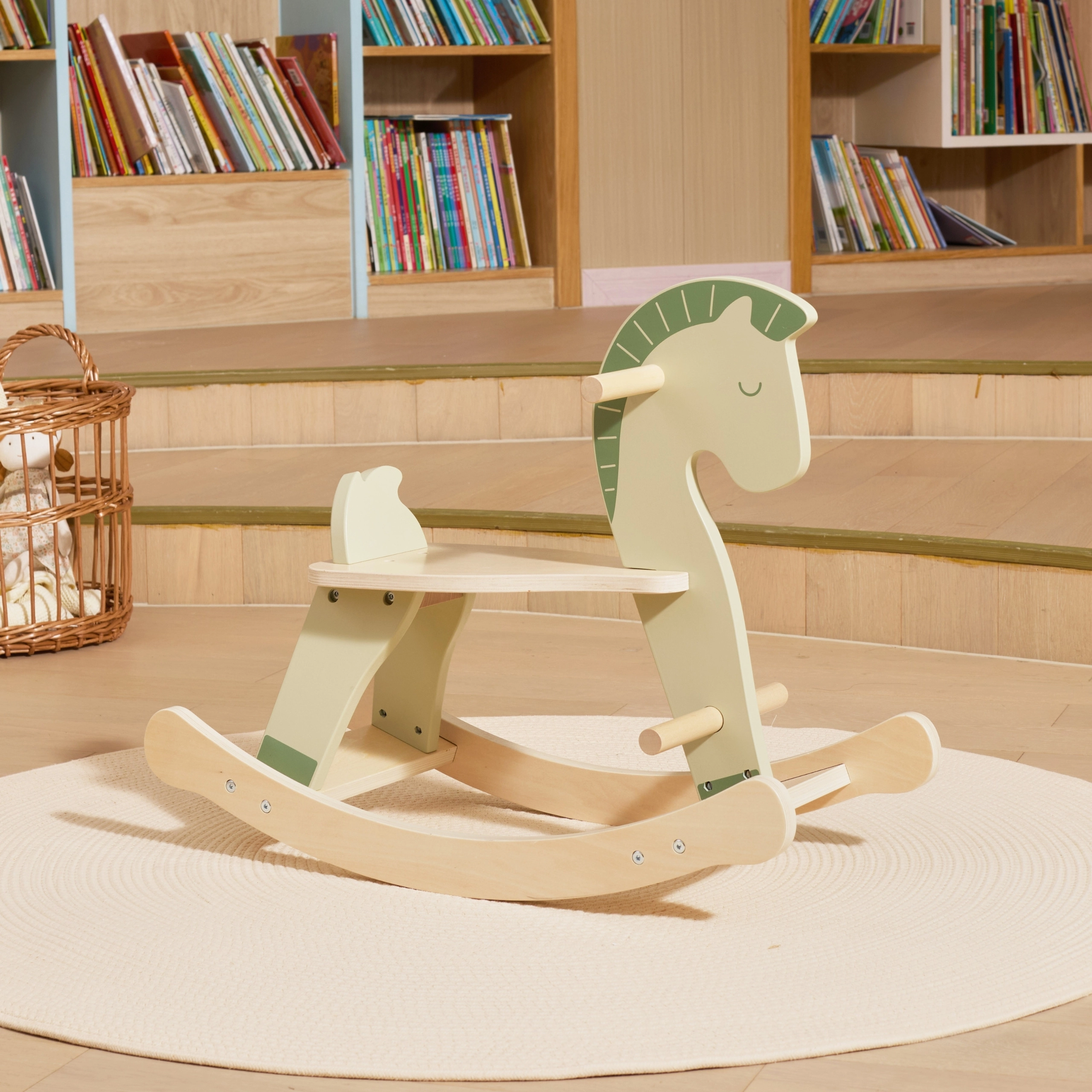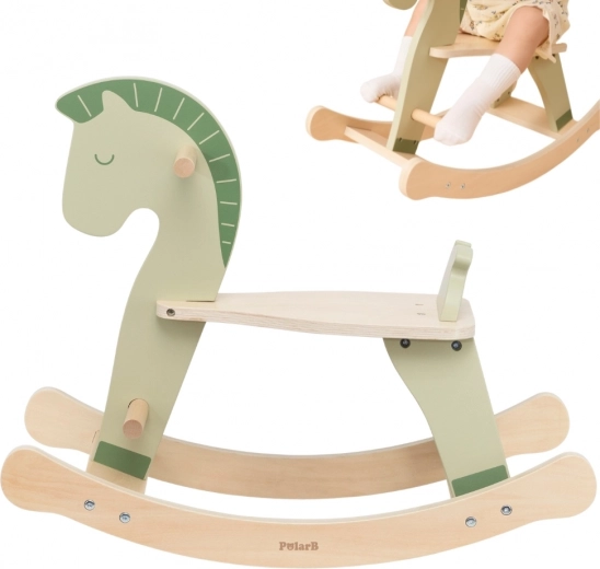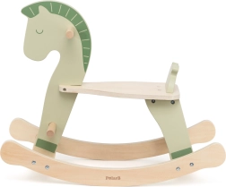 Tento drevený hojdací koník v jemnej pastelovo zelenej farbe je skvelým spoločníkom na prvé jazdy doma. Podporuje prirodzený rozvoj rovnováhy, motoriky aj sebadôvery dieťaťa. Vďaka pevným madlám a stúpadlám sa deti cítia isto a bezpečne, zatiaľ čo hladko tvarované lyžiny zaručujú plynulé a stabilné hojdanie.