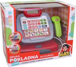 Detská pokladňa s českým dizajnom poteší všetkých malých predavačov. Ponúka svetelné a zvukové efekty, funkčný skener na načítanie cien, digitálnu kalkulačku a bohaté príslušenstvo vrátane českých papierových peňazí, platobných kariet a plastových mincí. Napájanie zabezpečujú 2× AA batérie (súčasť balenia). Vhodné pre deti od 3 rokov.