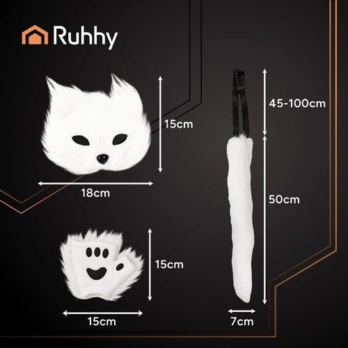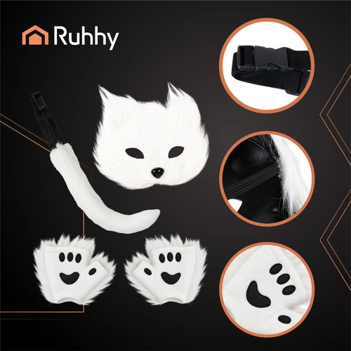 Vyjadrite svoju osobnosť s univerzálnym kostýmom RUHHY 4 v 1. Sada obsahuje masku na gumičke, nastaviteľný chvost s tvarovateľným drôtikom a roztomilé labky/rukavičky. Vďaka mäkkej a príjemnej kožušine, univerzálnej veľkosti a ľahkému prevedeniu je ideálna na cosplay, konvencie, fotenie, párty aj Halloween. Okamžite sa premeníte na tajomnú mačku, očarujúcu líšku alebo divokého vlka – stačí si to obliecť a zažiariť.
