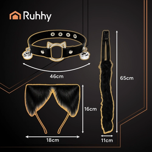 Vyjadri svoju fantáziu s 3-dielnou sadou RUHHY, ktorá kombinuje štýl, zábavu a pohodlie. Mäkké umelé kožušinové prevedenie v elegantnej čiernej farbe vyzerá efektne na fotkách aj videách a je príjemné na dotyk. Tvarovateľný chvost s pružným drôtikom ľahko nastavíš do ľubovoľného tvaru a choker s dvojicou zvončekov dodá hravý akcent. Obruč s ušami drží vďaka praktickému zabezpečeniu pevne na hlave.