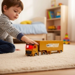 Tento bohato vybavený stavebný set ponúkne deťom hodiny nápaditej hry. Veľký ťahač s kontajnerom sa rozkladá do hernej plochy s rampami, zatiaľ čo vežový žeriav s hákom prenáša náklad presne tam, kde je treba. Realisticky poňaté stroje a množstvo doplnkov vytvárajú autentickú atmosféru skutočného staveniska.