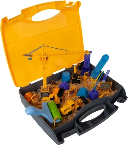 Tento XXL set s kinetickým pieskom ponúka všetko pre realistickú stavbu: prenosný kufrík slúži ako herný tác, takže si deti môžu kdekoľvek vytvoriť vlastné stavenisko. Pohyblivý žeriav, bager a nakladače, dopravné značky a formičky podporujú fantáziu, zatiaľ čo mäkký, tvarovateľný piesok rozvíja jemnú motoriku.