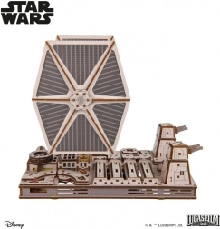 Fanúšikov poteší detailný interiér kokpitu, pohyblivé laserové delá aj farebná preglejka dodávajúca modelu realistický vzhľad. Skladanie prebieha bez lepidla a nástrojov a stredná náročnosť zaručuje zábavný projekt pre skúsenejších staviteľov. Model je kompatibilný s X‑Wing stíhačkou Lukea Skywalkera od Ugears – podstavce možno prepojiť a vytvoriť napínavú scénu z Hviezdy smrti.
