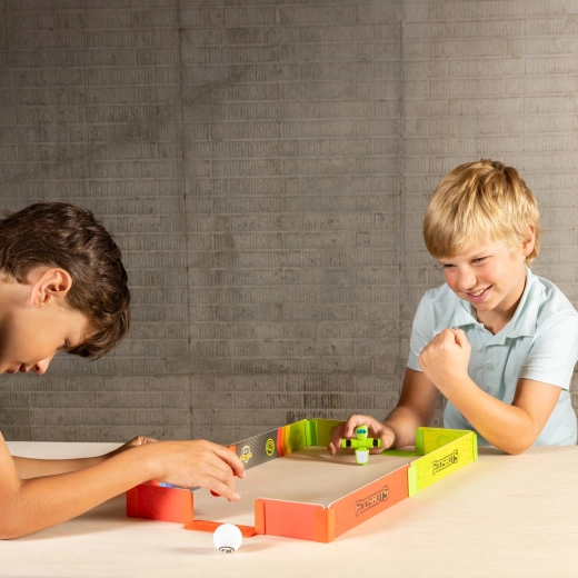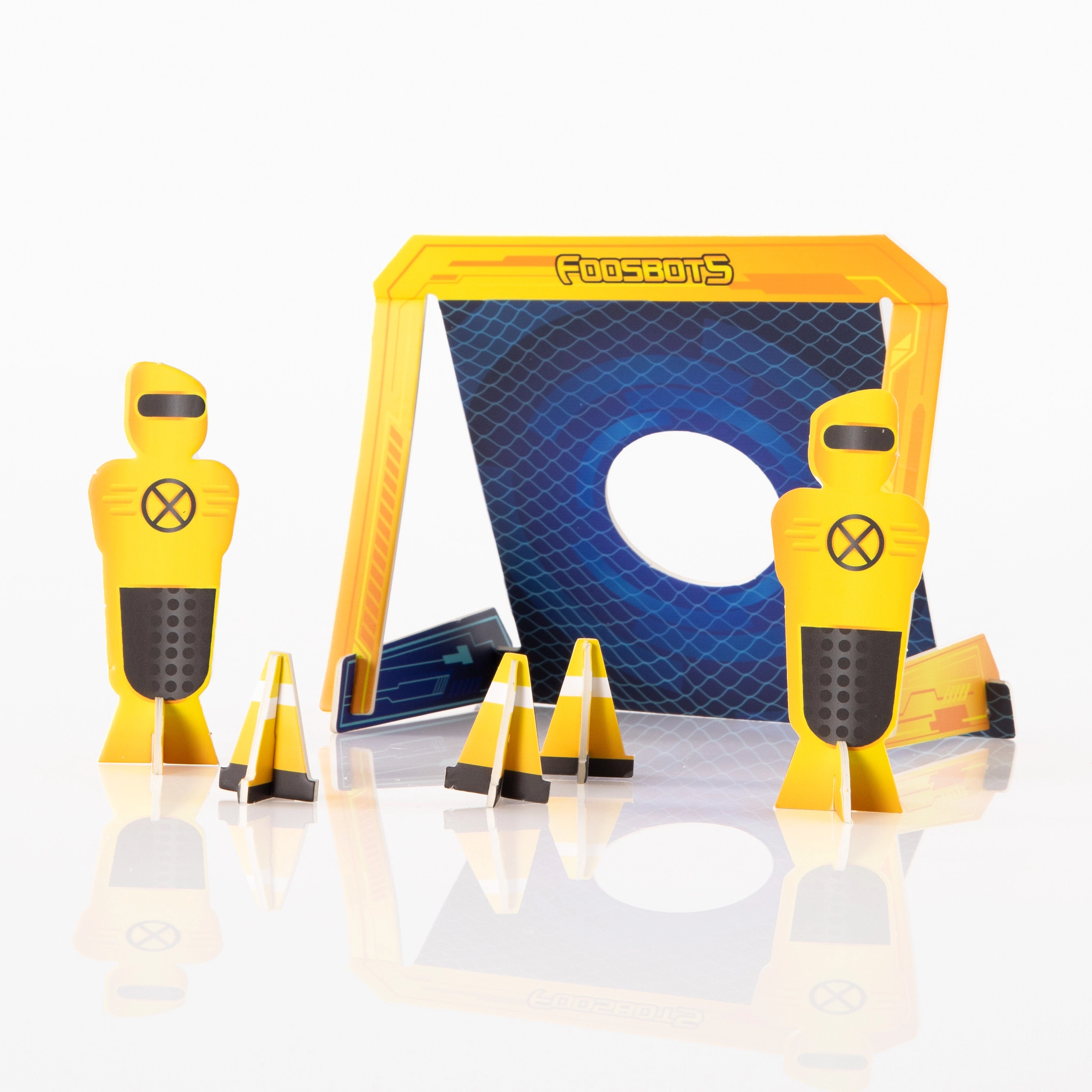 Foosbots štadiónová bitka prináša do obývačky svižnú akciu stolového futbalu vo vreckovom formáte. Vďaka farebným mantinelom, vstavaným bránkam a dvojici prstových robotov ľahko rozbehnete duel jeden na jedného. Ovládajte svoje „boty“ šikovnými prstami, vystreľte bielu loptu a bráňte bránku v bleskovom tempe.