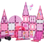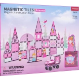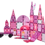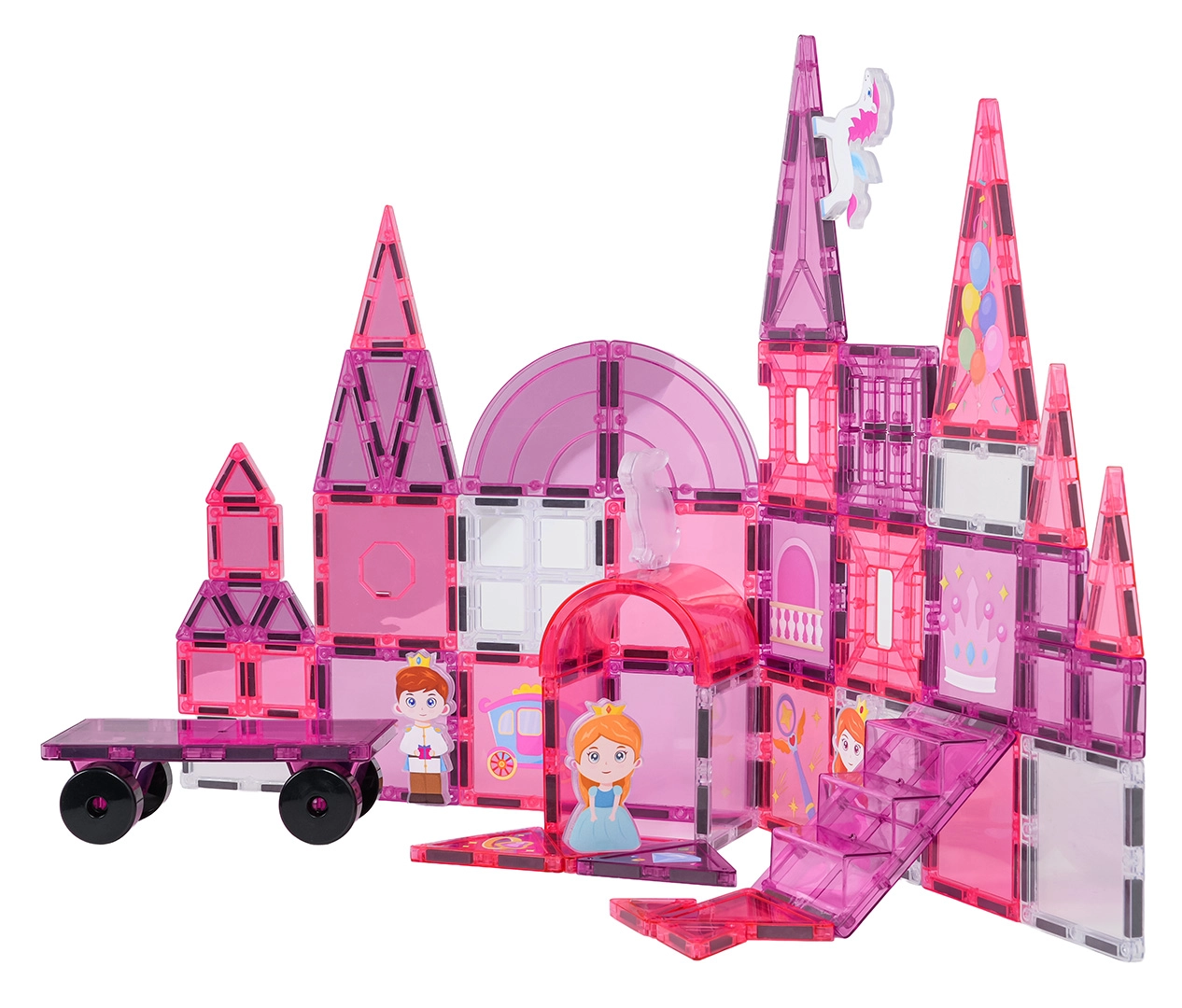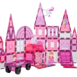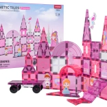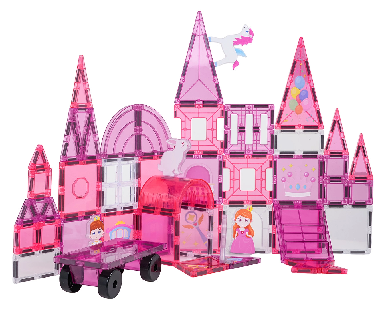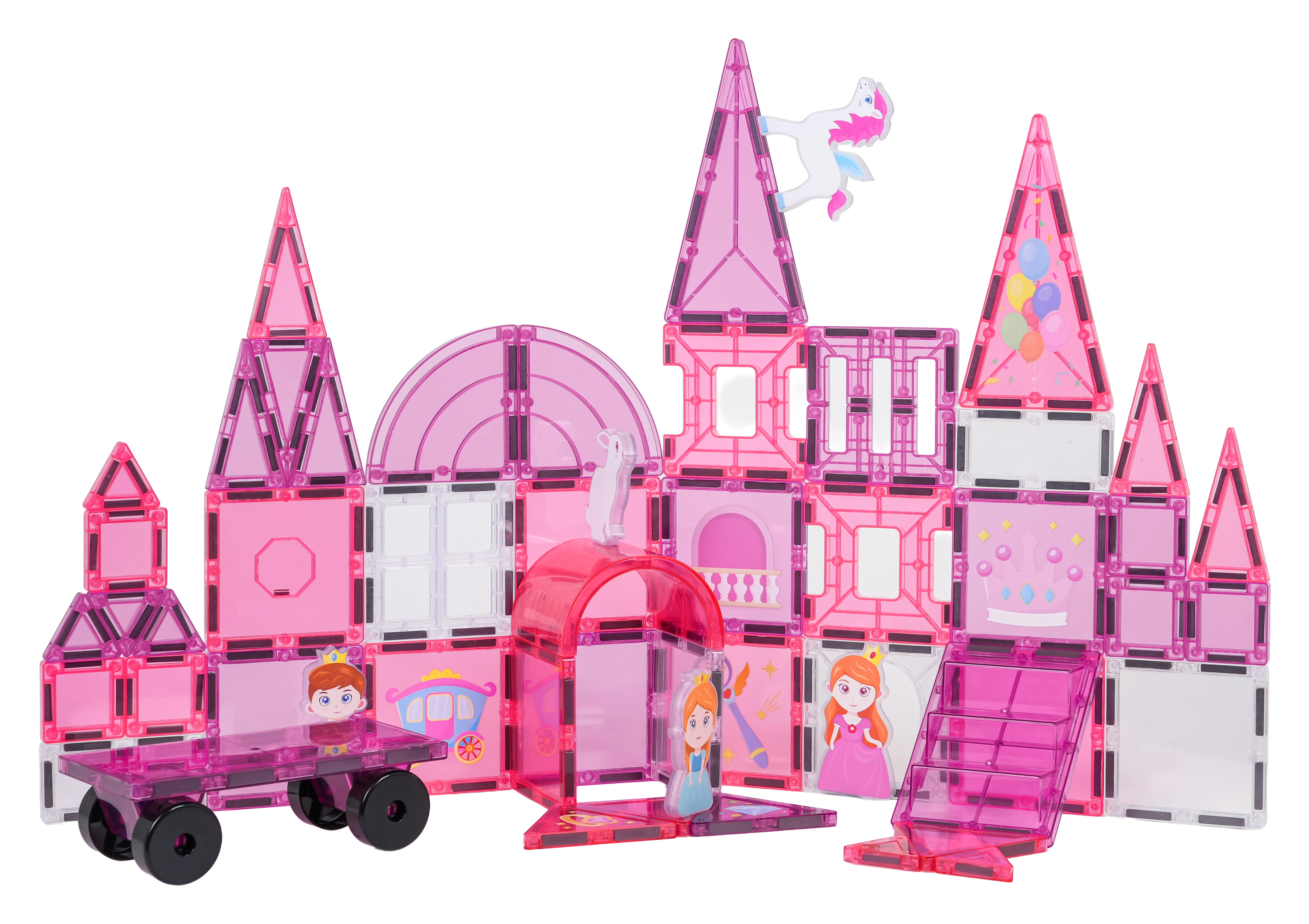 Magnetická stavebnica Ružová princezná prináša deťom svet fantázie a tvorenia. Priesvitné farebné dieliky rôznych tvarov sa intuitívne spájajú a umožňujú stavať veže, brány, okná, schodiská aj celé rozprávkové zámky. Vďaka podvozku s kolieskami možno vytvárať aj kočiare alebo vozíky a zapojiť do hry priložené postavičky.