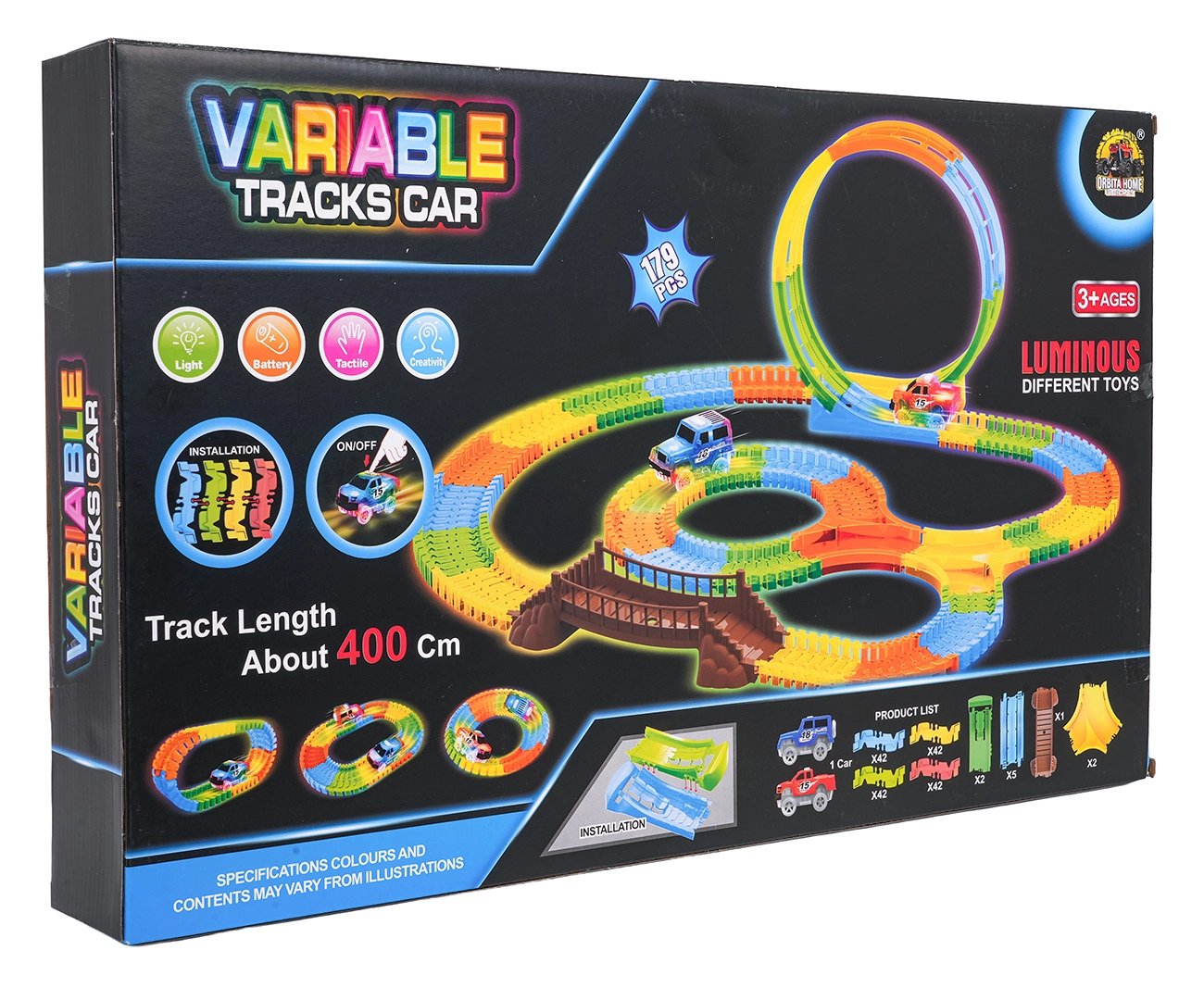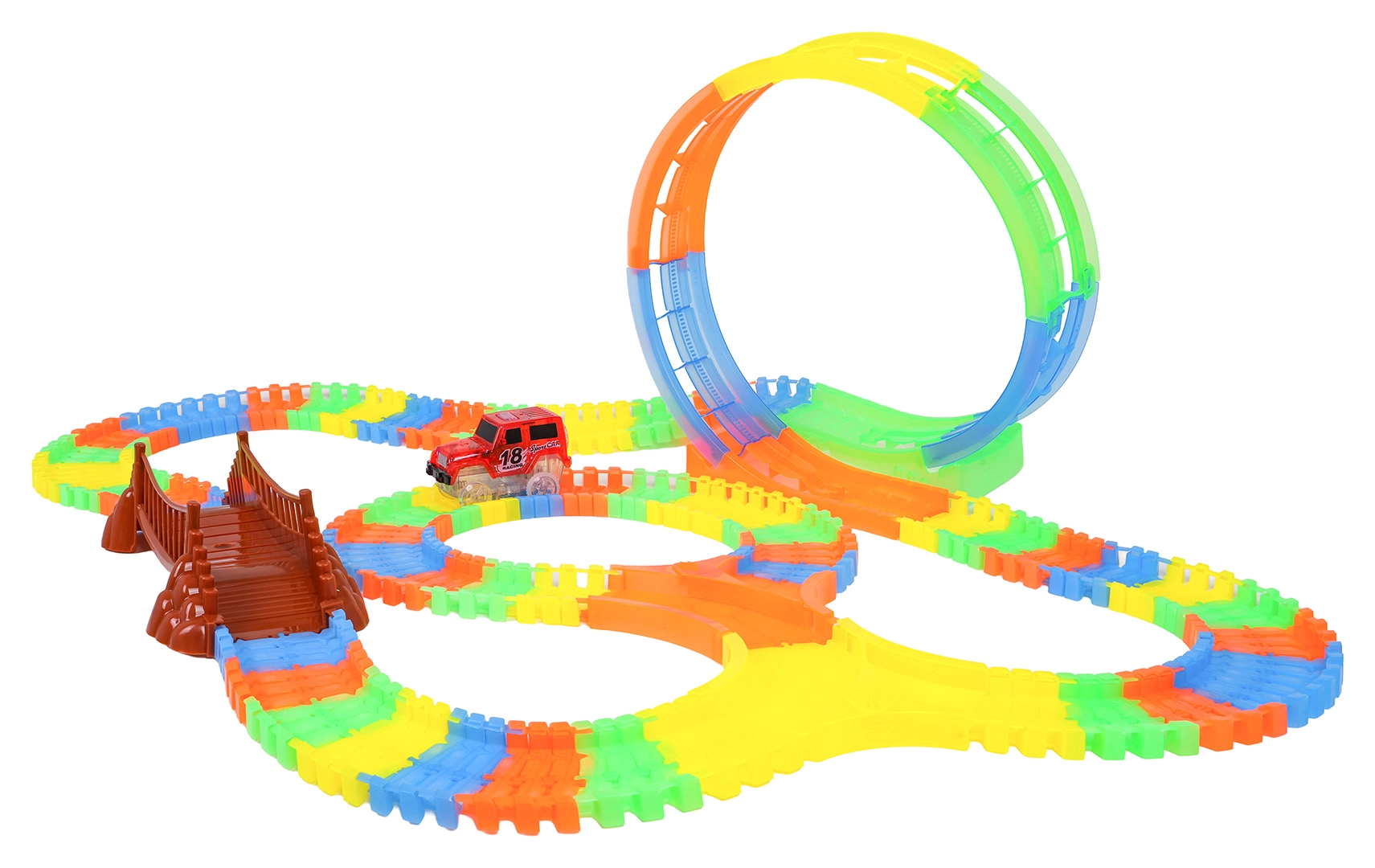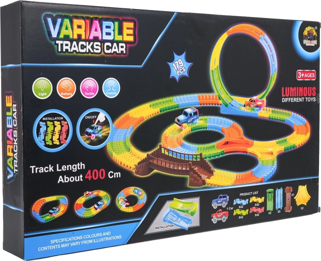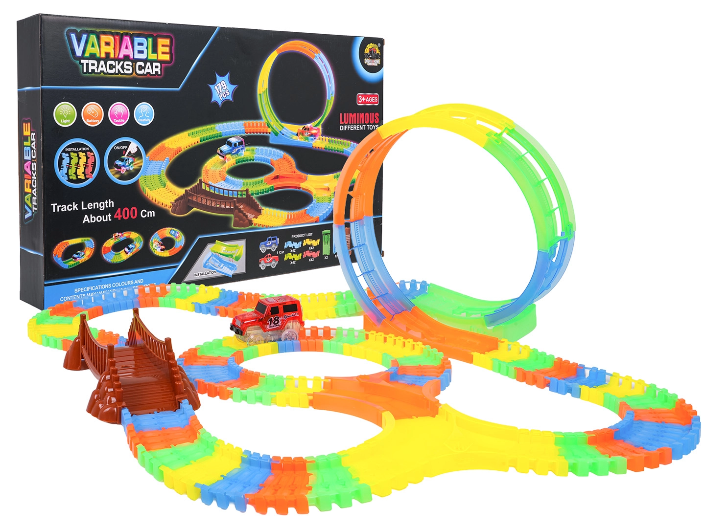 Závodná svietiaca autodráha s 360° slučkou, 179 dielov